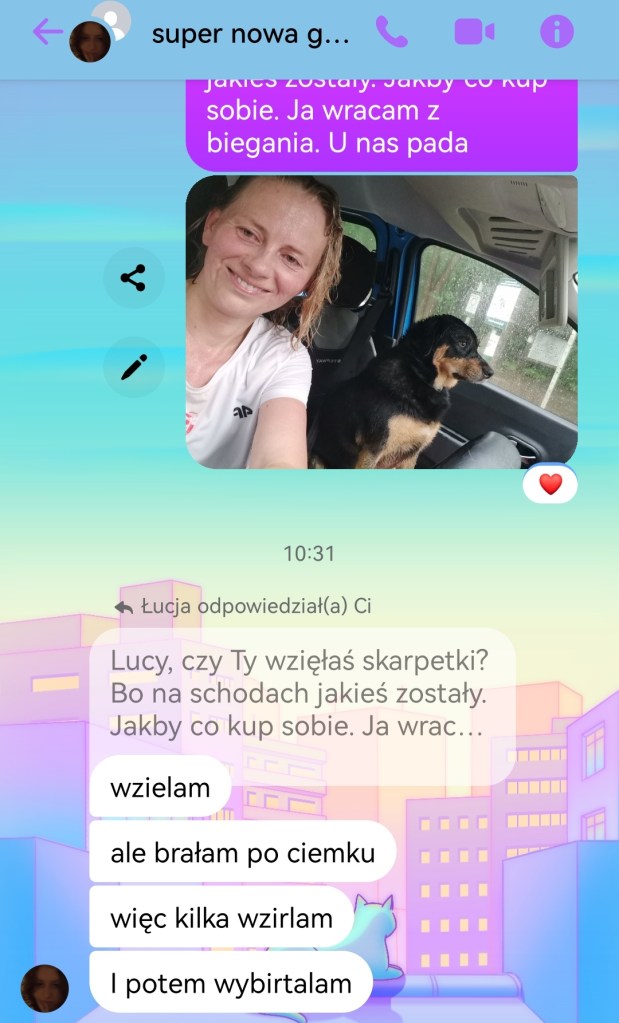 Rodzinnie namawiam Was też to zakładania sobie z dziećmi grup w komunikatorach (na pewno macie indywidualne z każdym z osobna), ale takie grupy WSPÓLNE są też bardzo fajne. U nas one najlepiej działają jak się trochę rozjeżdżamy i dzięki nim widzę, że NIKT z nikim nie traci kontaktu 🙂 Wkleję Wam kilka screenów z naszej grupy! A zioła? Bo dziś moje ulubione kościelne święto! Zioła nazbierałam rano z Bibi! 🙂