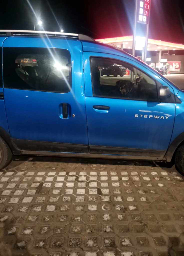 Wyposażona więc w syrop i TYLKO syrop wróciłam do auta, a tam na mnie czekało w oknie TAKIE psie cudo!
