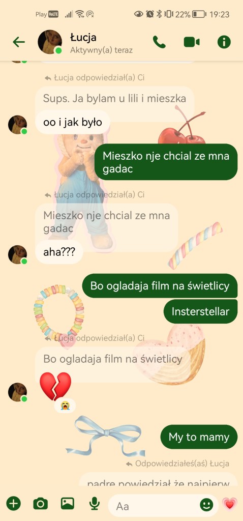 Lili i Mieszko mają się doskonale. O Lili już wiecie, ale i Mieszko tak się wkręcił w tamto życie, że wczoraj jak do nich przyjechałam NIE miał czasu ze mną rozmawiać. Przywiozłam obrane i pokrojone jabłuszka i marchewkę (rano byłam na rynku) i skończyło się, że Lila mu potem zaniosła by sobie zjadł w sali kinowej. Zgodnie mówią, że jest FAJNIE. Cieszy mnie to bardzo, chociaż tak mi smutno, że mój mały syneczek jest DUŻY 😭 Planów na dziś brak. Rano pobiegałam, na obiad wpada zięć i pewnie zrobimy naleśniki!