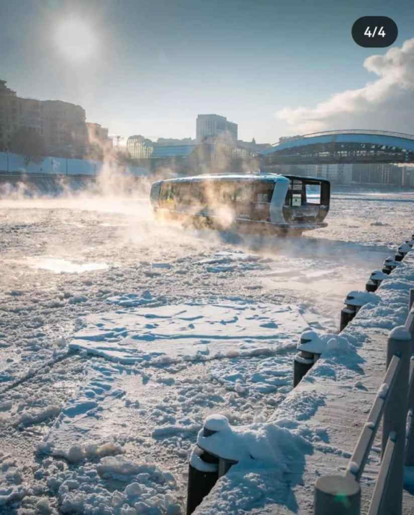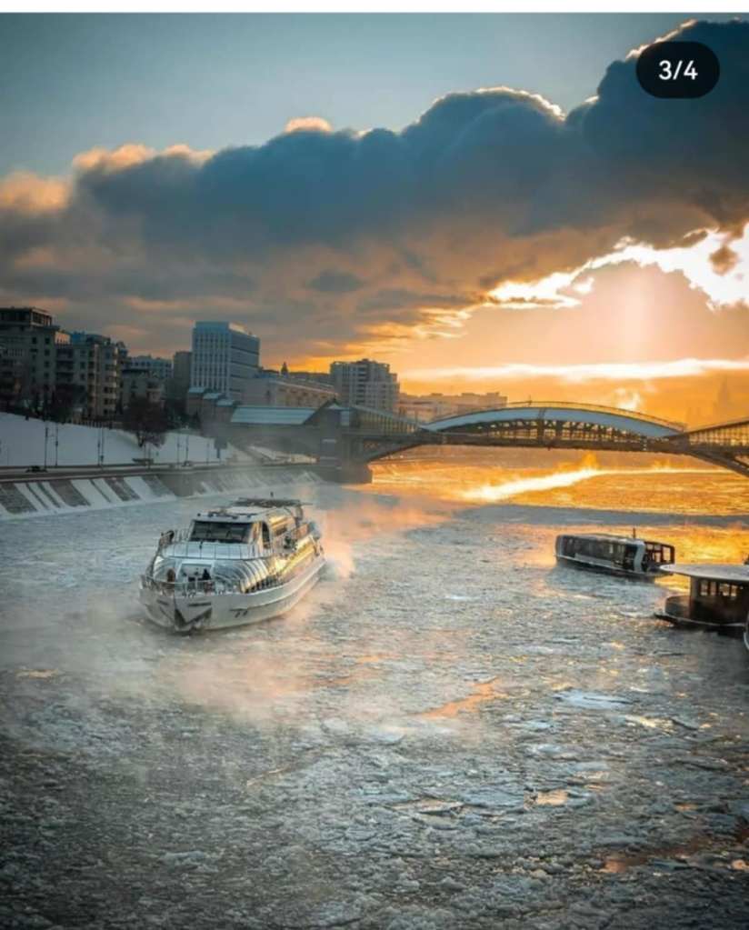 Pokaże Wam wycieczkowy lodołamacz, który kursuje po moskiewskiej rzece. Niesamowicie to wygląda. Jak obrazek fantastyczny. LODOŁAMACZ. Wycieczkowy.